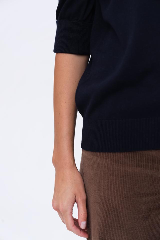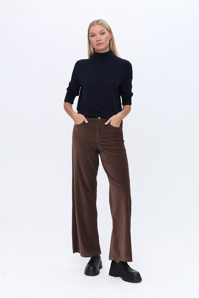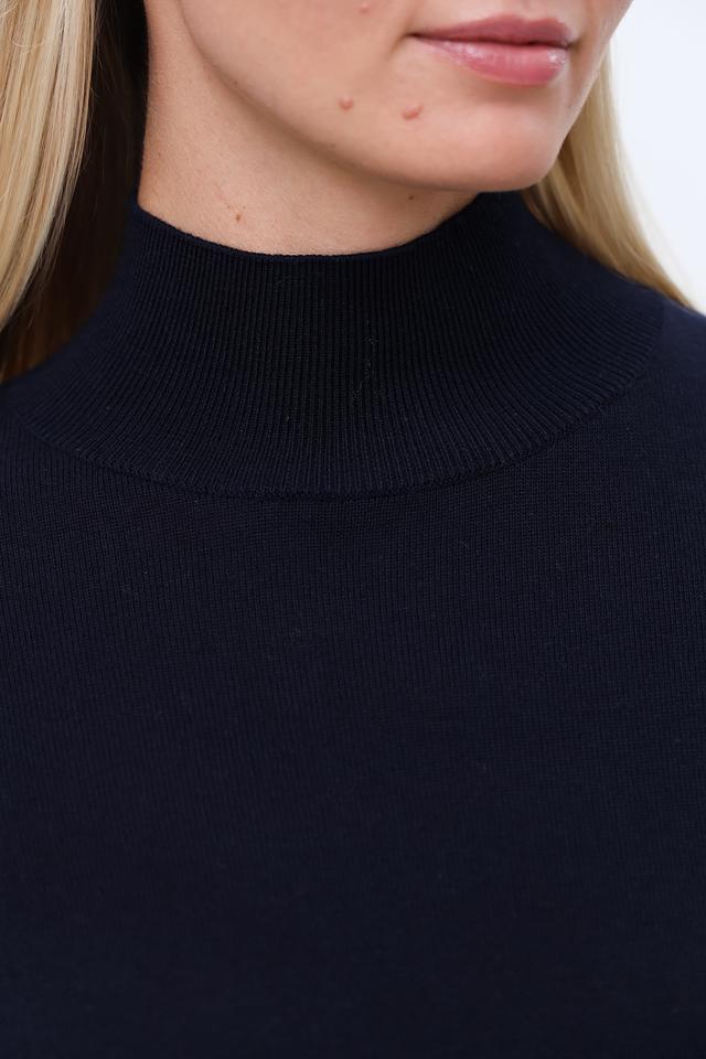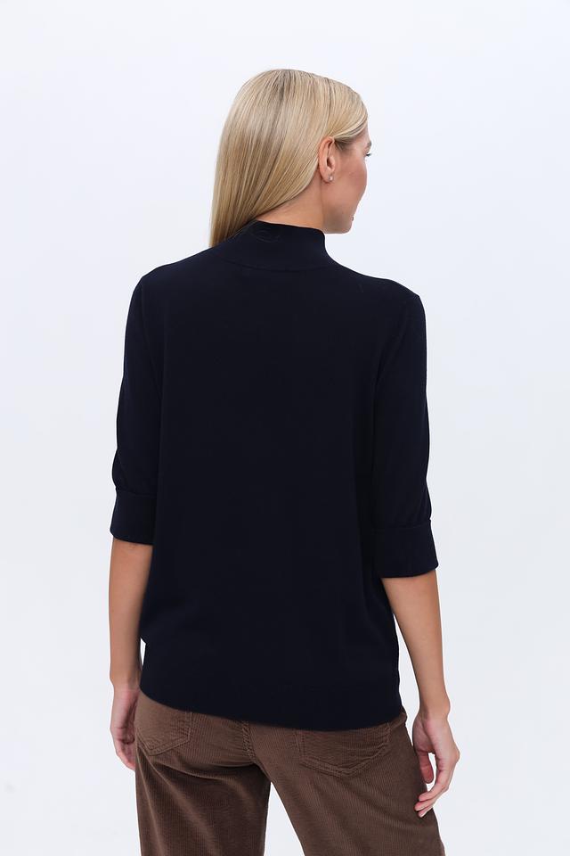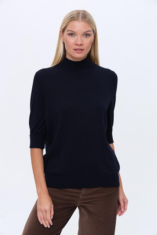 Пуловер имеет классический крой с высоким горлом, который визуально удлиняет шею и придает образу элегантность. Рукав 3/4 делает его универсальным для любого времени года. Прямой силуэт позволяет сочетать его как с юбками, так и с брюками.