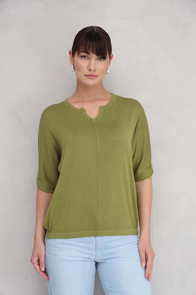 Рукава длиной 3/4 делают этот пуловер универсальным – он подойдет как для теплой погоды, так и для прохладных вечеров. Свободный крой обеспечивает комфорт и свободу движений.