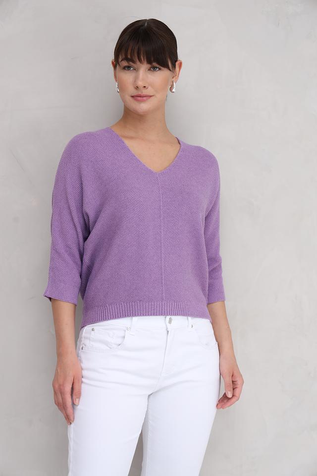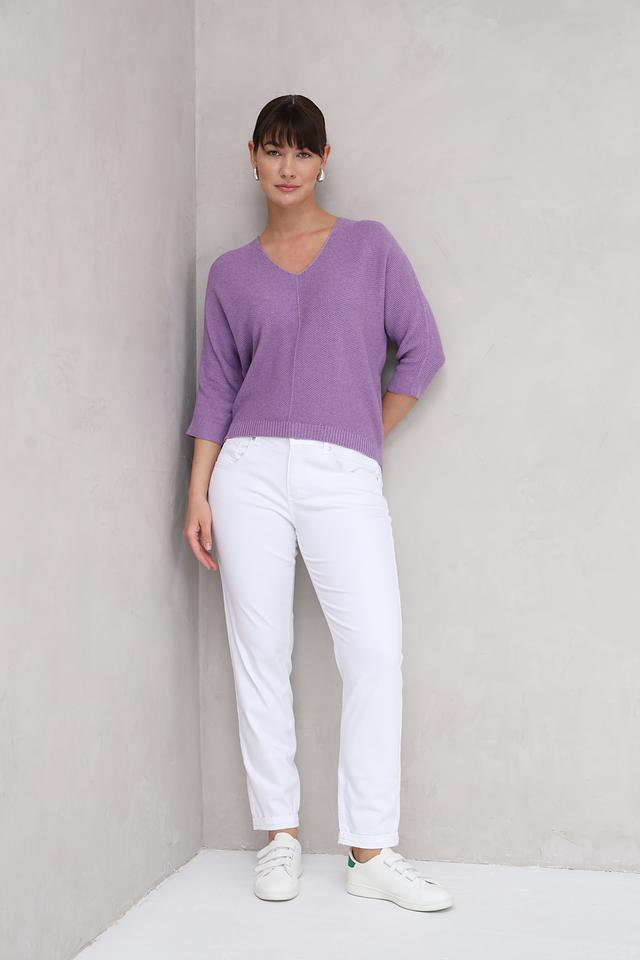 Женский пуловер Repeat лавандового цвета – это стильная и комфортная модель с V-образным вырезом и рукавом 3/4. Изготовлен из мягкого хлопка, обеспечивающего приятные ощущения при носке. Состав: хлопок 100%
