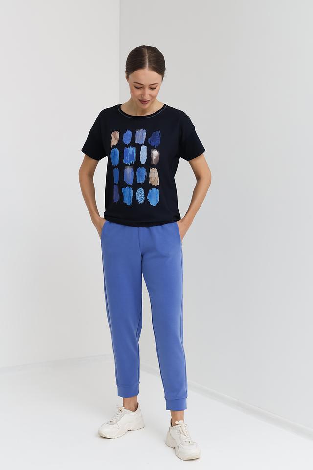 Состав ткани: 51% модал, 43% полиэстер, 6% эластан. Модал придает брюкам мягкость и приятные тактильные ощущения, полиэстер обеспечивает износостойкость, а эластан – эластичность и комфорт.