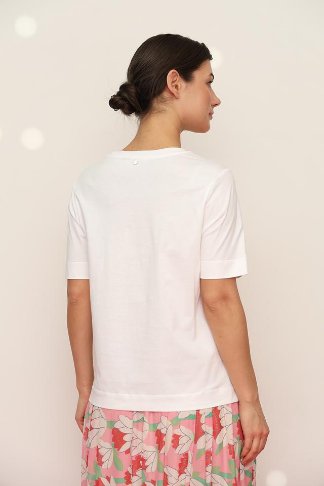 Эта белая футболка от Rich and Royal – отличный выбор для создания повседневного, но запоминающегося образа. Футболка выполнена из высококачественного 100% хлопка, что гарантирует мягкость и комфорт при ношении.