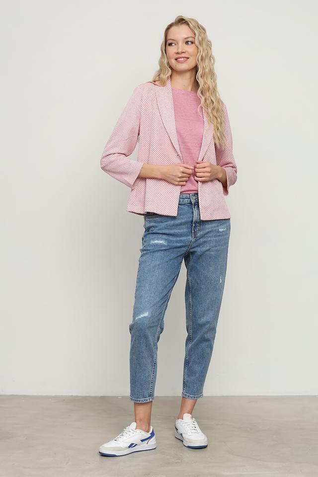 Розовый жакет Rich and Royal в клетку – стильное и комфортное решение для создания модных образов. Жакет имеет удобный крой и застежку на пуговицу, что делает его практичным и универсальным. Состав: полиэстер 63%, вискоза 35%, эластан 2%