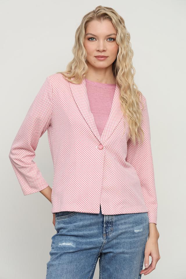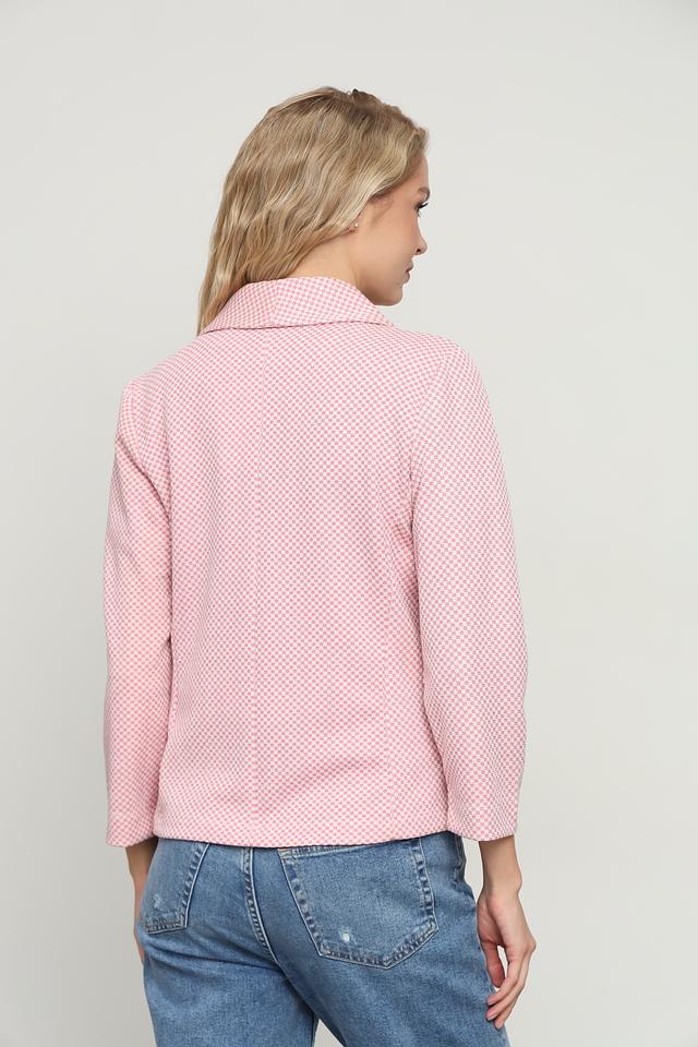 Этот жакет от Rich and Royal станет отличным дополнением к вашему гардеробу. Он выполнен в нежном розовом цвете с аккуратным клетчатым принтом, который придает ему особый шарм.