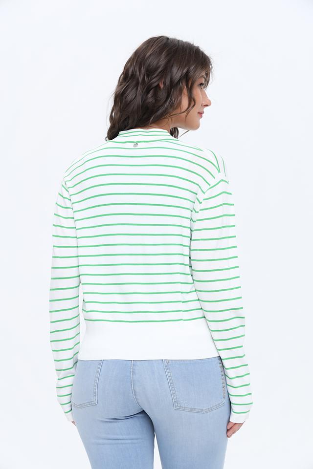 Этот кардиган от Rich and Royal станет прекрасным дополнением к вашему гардеробу. Модель выполнена в белом цвете с яркой зелёной полоской, что делает её особенно привлекательной и универсальной.
