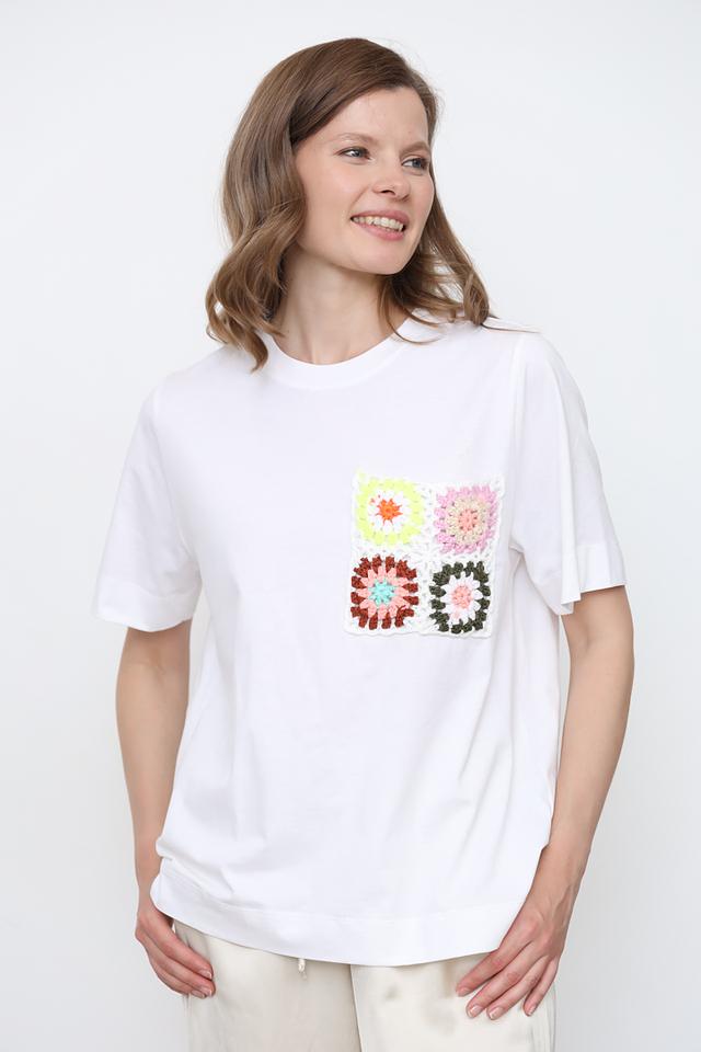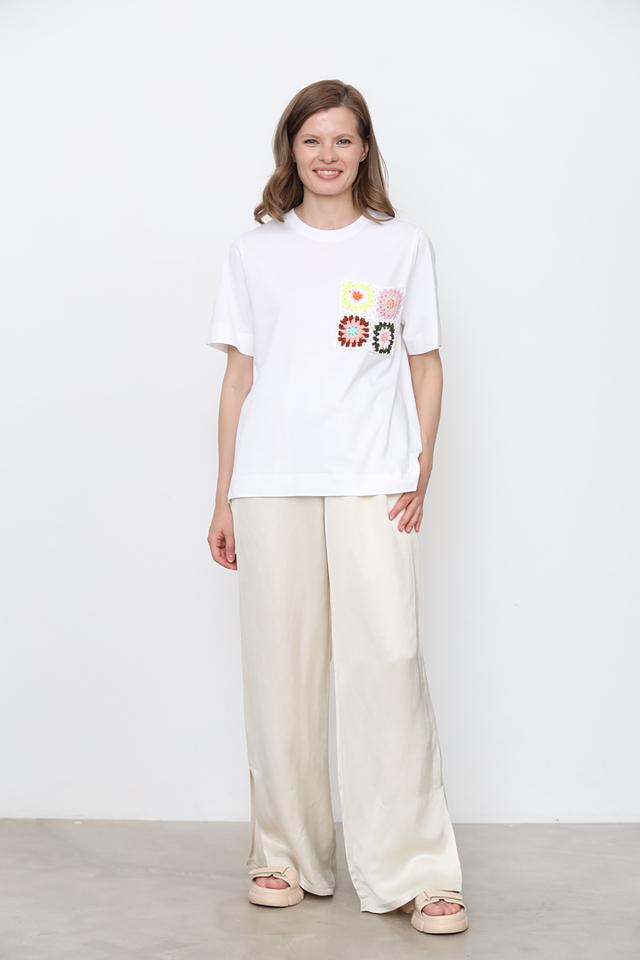 Белая футболка Rich and Royal с яркой аппликацией в виде цветочных мотивов. Изготовлена из 100% хлопка, обеспечивая комфорт и воздухопроницаемость. Стильный и оригинальный выбор для повседневного образа. Состав: хлопок 100%