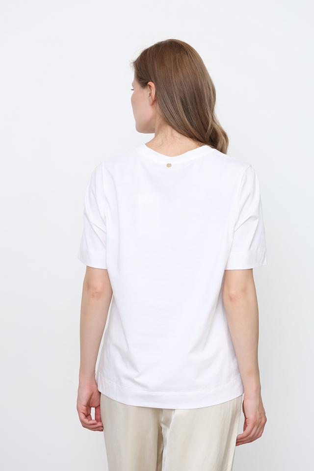 Футболка имеет прямой крой, короткие рукава и круглый вырез горловины. Она идеально подходит для создания повседневных образов в стиле casual. Сочетайте ее с джинсами, шортами или юбками для создания стильного и комфортного лука.