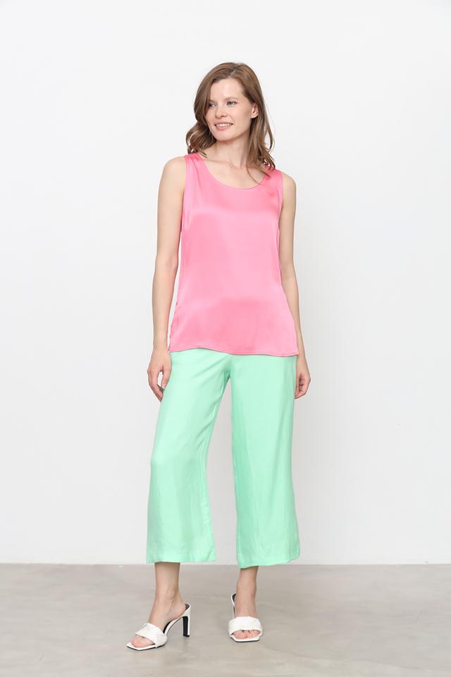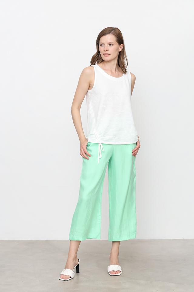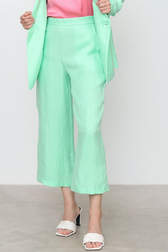 Представляем брюки палаццо от бренда Rich and Royal, выполненные в нежном мятном оттенке. Эта модель станет прекрасным дополнением к вашему гардеробу, позволяя создавать как повседневные, так и более формальные образы.