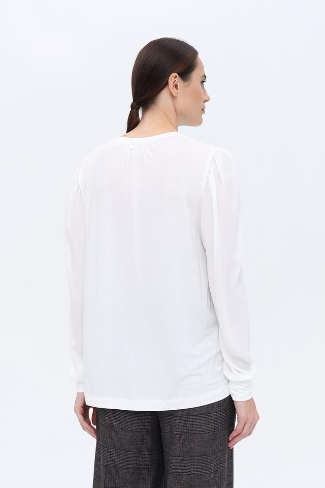 Белая блуза от Rich and Royal с длинными рукавами-фонариками и округлым вырезом. Изготовлена из лёгкой и приятной к телу ткани, станет отличным дополнением к вашему гардеробу. Состав: полиэстер 100%