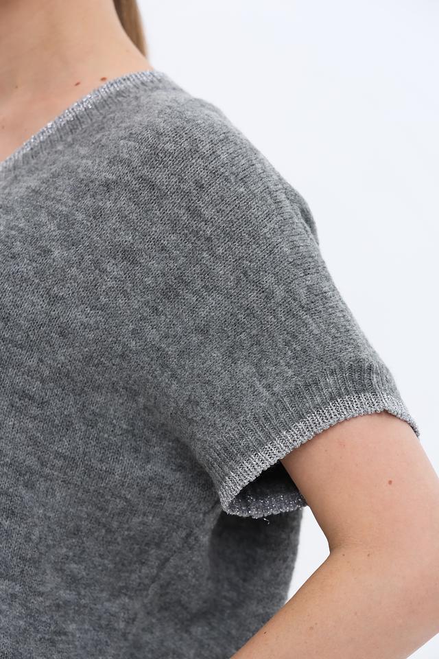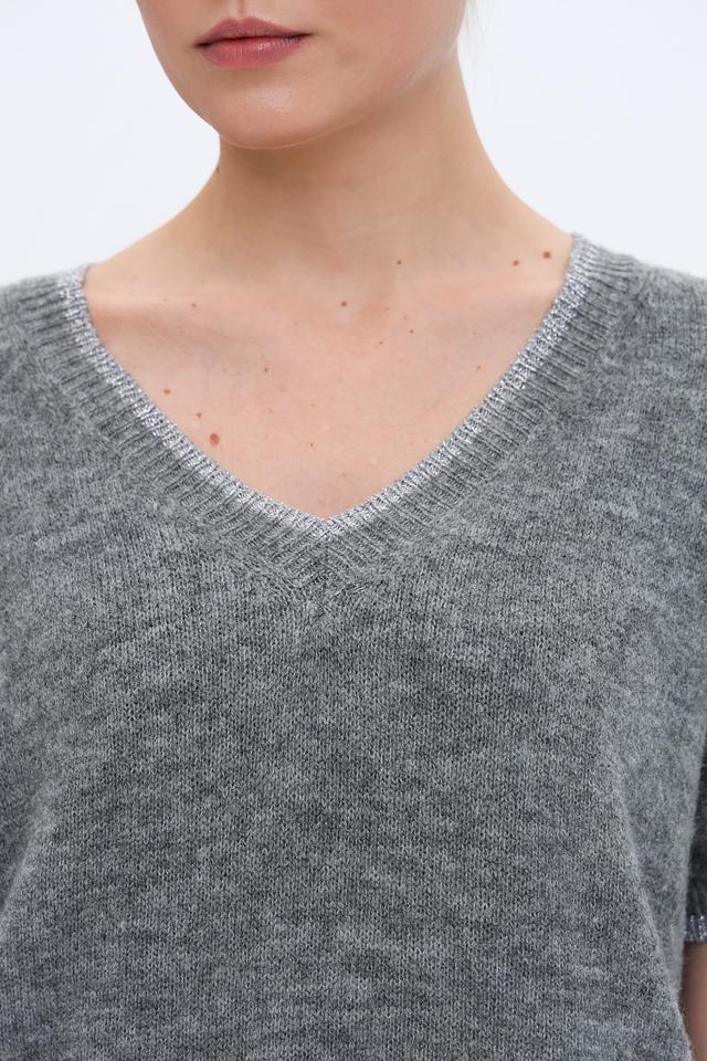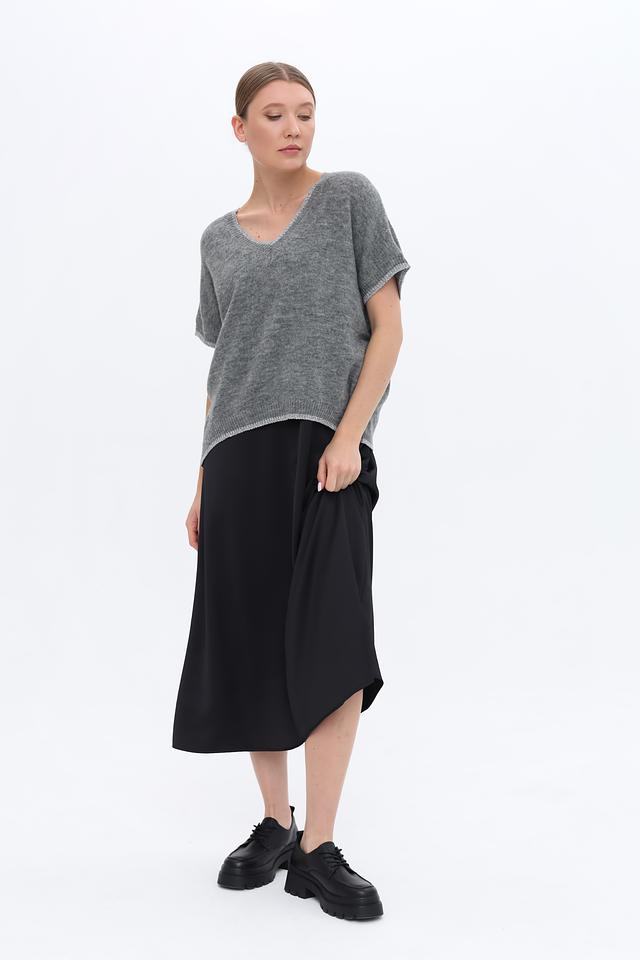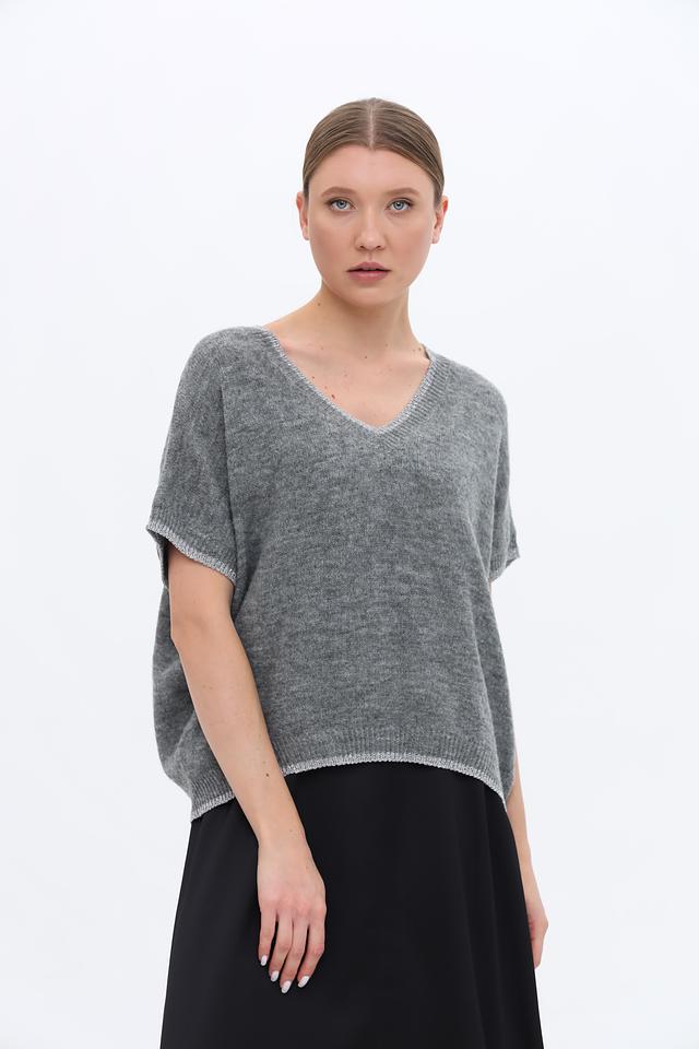 Особенности модели: V-образный вырез, короткие рукава, трикотажная фактура.Наличие в сети ХЦ