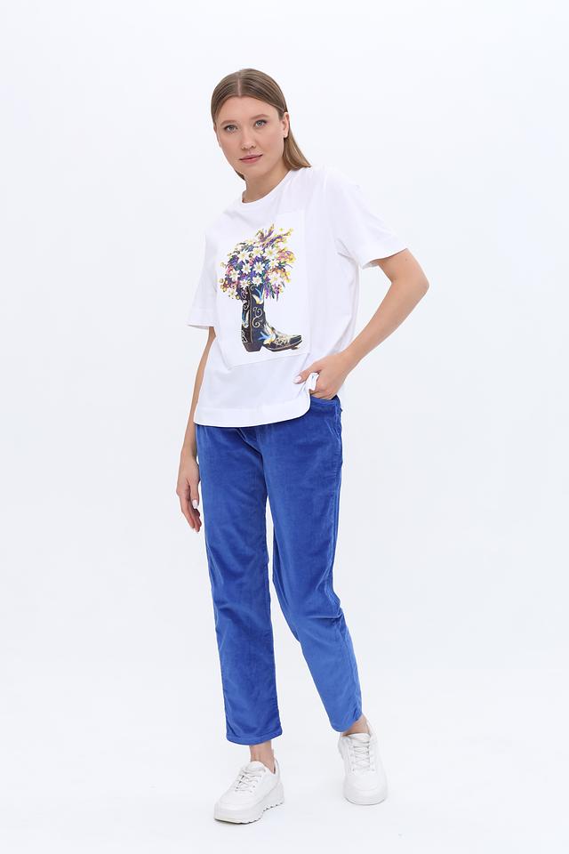 Представляем вашему вниманию стильные брюки от бренда Rich and Royal. Эта модель выполнена из мягкого вельвета насыщенного синего цвета, который придаёт образу элегантность и изысканность.
