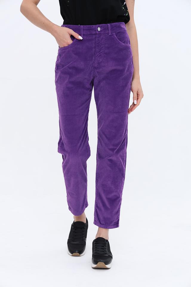Насыщенный фиолетовый цвет делает эти брюки ярким акцентом в вашем образе. Они прекрасно сочетаются с различными видами верхней одежды и обуви, позволяя создавать разнообразные стильные комплекты. Вельвет приятен на ощупь и хорошо держит форму.