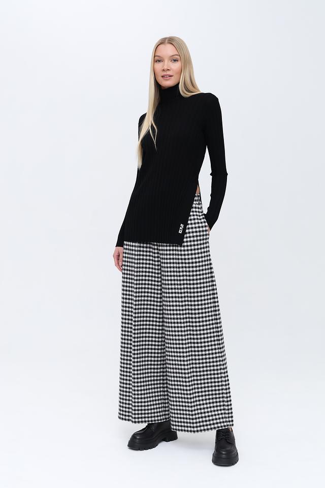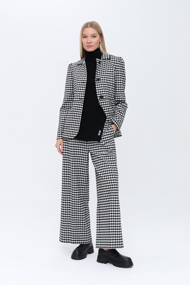 Представляем стильные брюки от бренда Rich and Royal. Эта модель выполнена в классическую чёрно-белую клетку, которая всегда актуальна и легко сочетается с различными элементами гардероба.