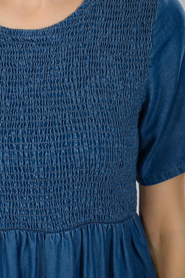 Платье Rich and Royal голубого цвета выполнено из 100% лиоцела и отличается свободным кроем и сборкой на груди. Это платье станет отличным выбором для создания комфортного и стильного образа. Состав: лиоцел 100%