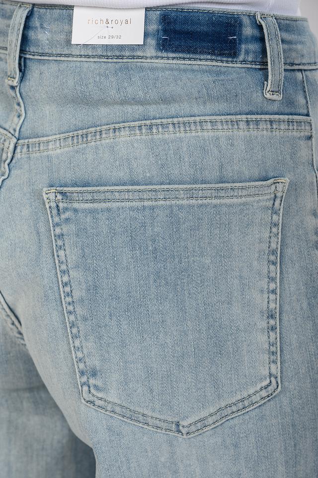 Представляем стильные джинсы от бренда Rich and Royal. Эта модель выполнена в светло-голубом цвете с выраженным эффектом потертости, что придает им винтажный вид.