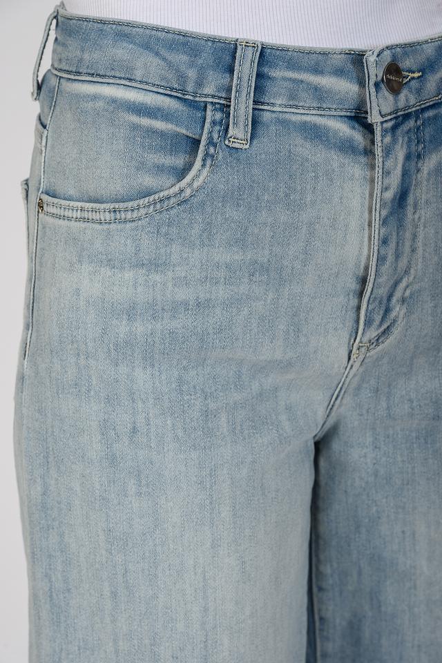 Джинсы имеют высокую посадку, которая подчеркивает талию и создает элегантный силуэт. Прямой крой обеспечивает комфорт и свободу движений, а слегка укороченная длина делает их идеальными для ношения с кедами или ботинками.