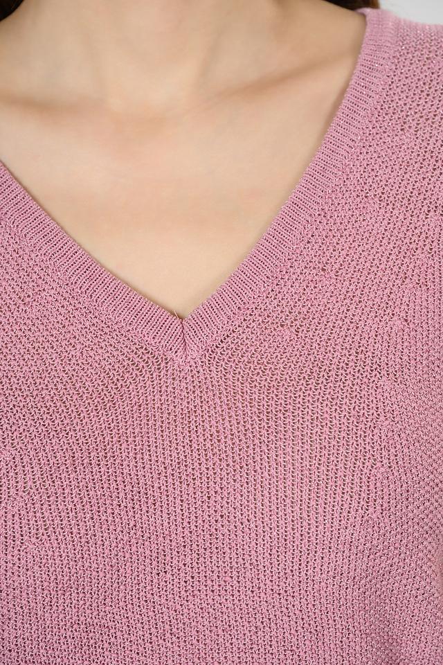 Модель имеет V-образный вырез и короткие рукава, что делает ее идеальным выбором для теплой погоды. Пуловер имеет слегка приталенный силуэт, который подчеркивает фигуру.
