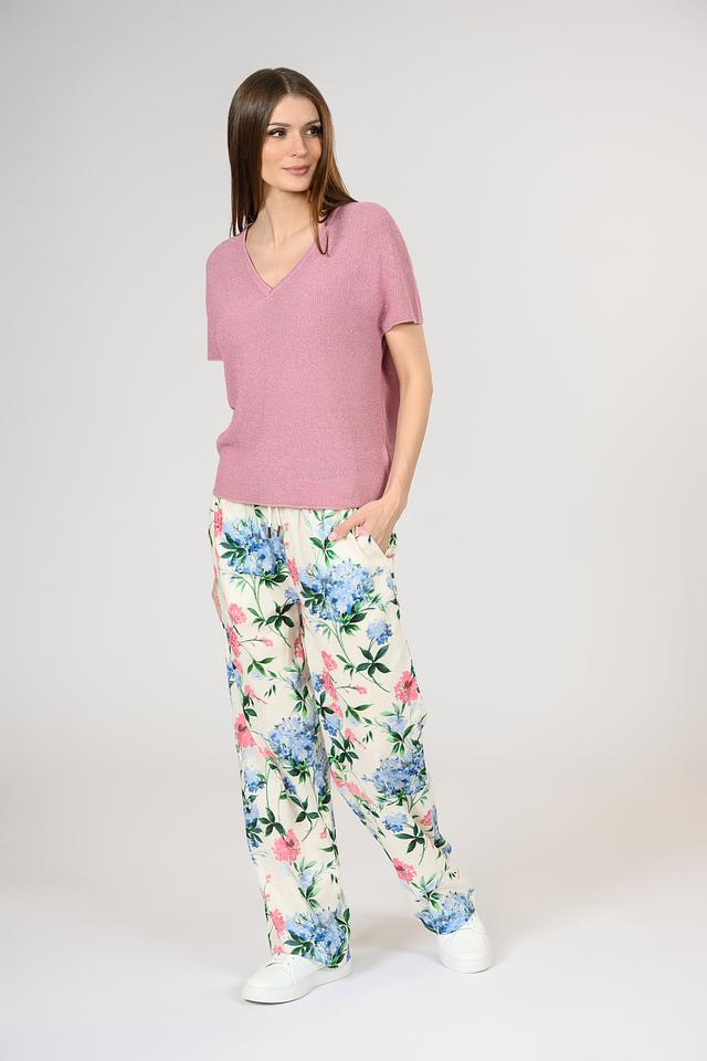 Женские брюки Rich and Royal кремового цвета с ярким цветочным принтом. Изготовлены из натурального льна и хлопка, обеспечивающих комфорт и воздухопроницаемость. Состав: лен 55%, хлопок 45%