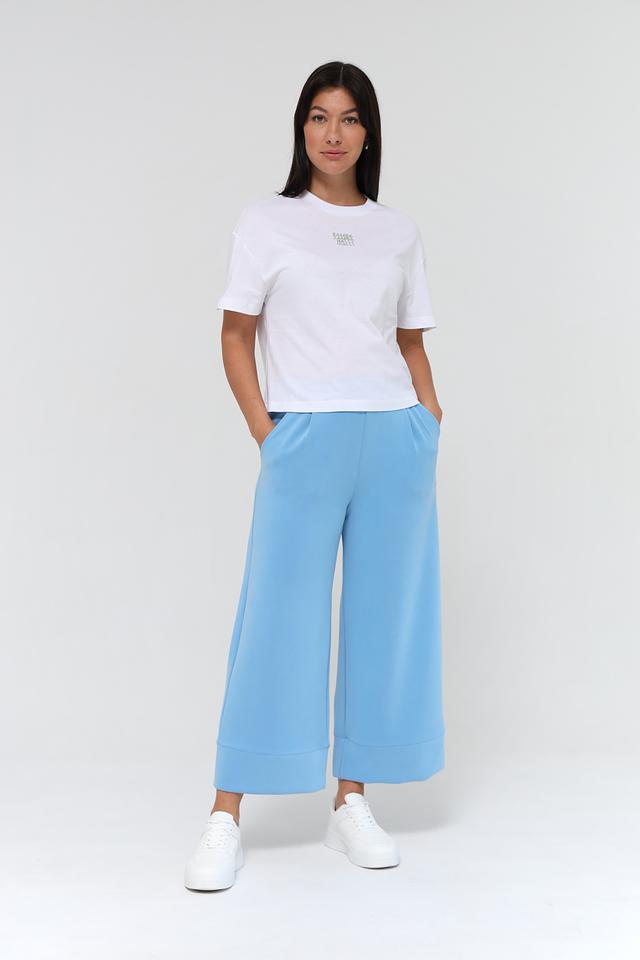 Представляем стильные брюки кюлоты от бренда Rich and Royal. Эта модель выполнена в нежном голубом цвете и станет отличным дополнением к вашему гардеробу.