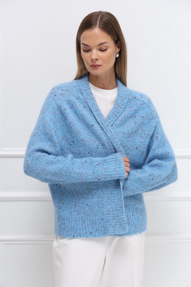 Женский жакет Rich and Royal голубого цвета с меланжевым узором – это стильное и уютное решение для создания комфортных образов. Модель имеет свободный крой и V-образный вырез, что делает ее универсальной и подходящей для различных стилей одежды. Состав: акрил 33%, альпака 30%, полиамид 17%, шерсть 11%, хлопок 6%, полиэстер 2%, эластан 1%