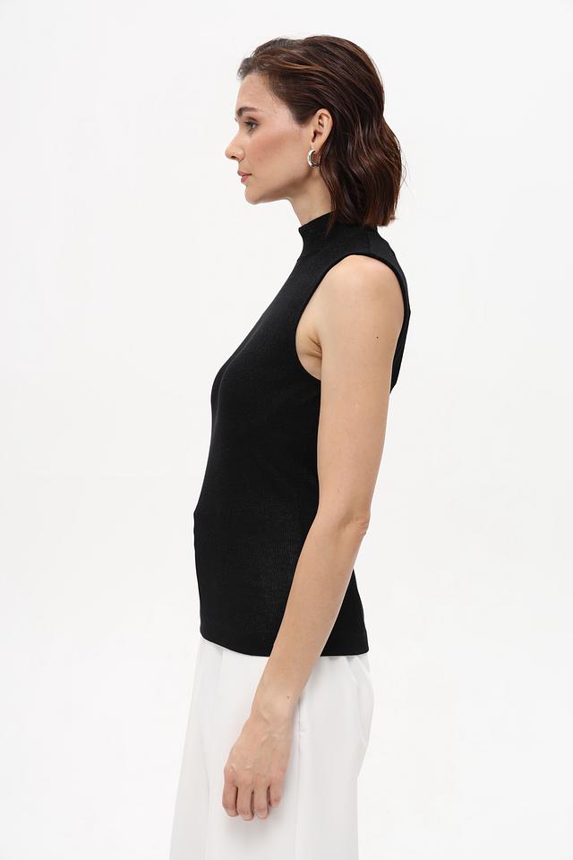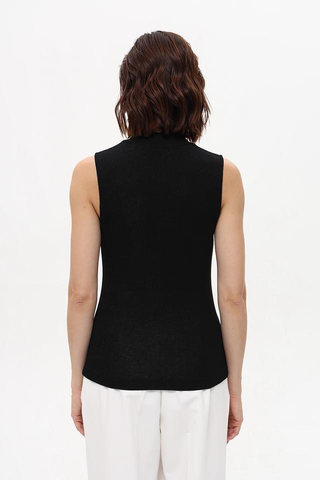 Чёрный топ Rich and Royal — это базовая модель без рукавов с высоким воротом. Лаконичный дизайн и эластичный трикотаж обеспечивают комфортную посадку и универсальность в создании образов. Состав: вискоза 70%, полиамид 28%, эластан 2%