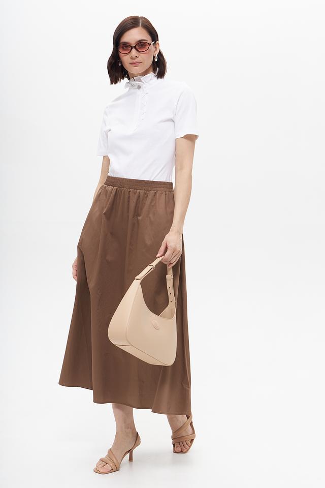 Блузка имеет короткие рукава и аккуратный воротник-стойку, который украшен нежной рюшью. Спереди блузка застегивается на пуговицы, добавляя ей изысканности. Благодаря своему лаконичному дизайну, эта блузка идеально подходит для создания как повседневных, так и более формальных нарядов.