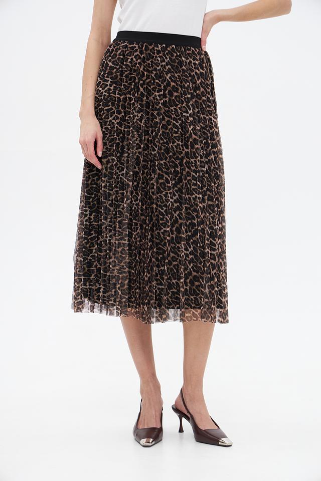 Юбка имеет миди длину и плиссированную конструкцию, обеспечивающую лёгкость и свободу движений. Широкая эластичная резинка на талии гарантирует комфортную посадку и подстраивается под особенности фигуры.
