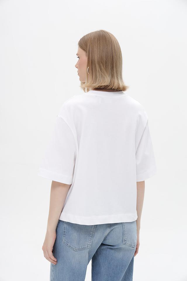Футболка имеет прямой крой, короткие рукава и круглый вырез горловины. Она идеально подходит для создания повседневных образов в сочетании с джинсами, шортами или юбками. Благодаря своему универсальному дизайну, эта футболка легко сочетается с различными элементами одежды и аксессуарами.