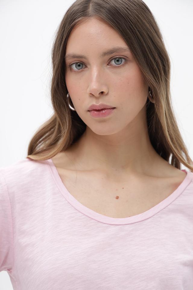 Женская футболка от бренда Rich and Royal выполнена в нежном розовом цвете.