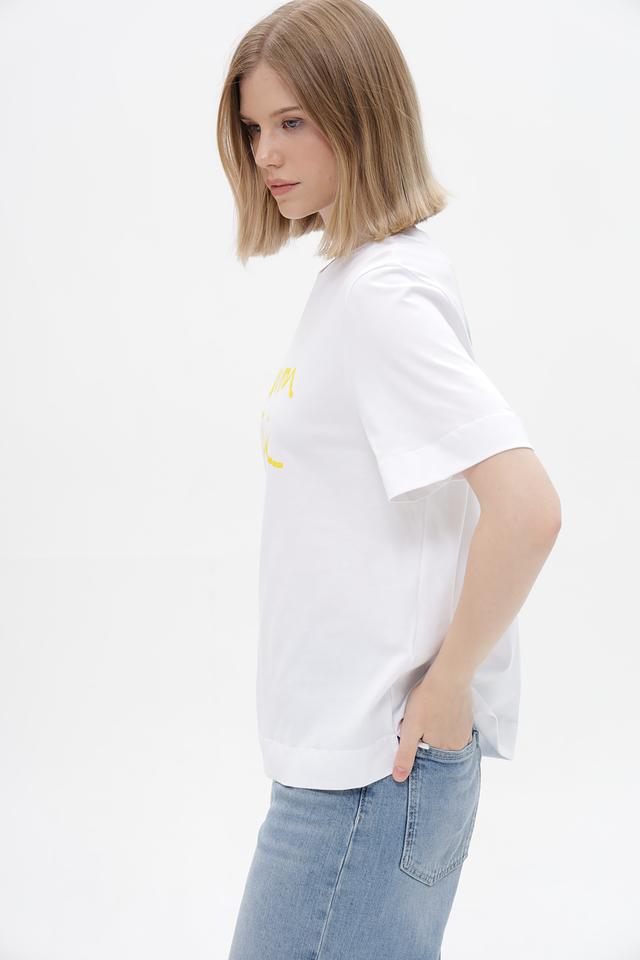 Футболка изготовлена из 100% хлопка высокого качества, что делает ее приятной к телу и обеспечивает хорошую воздухопроницаемость. Она идеально подойдет для повседневной носки и создания непринужденных образов.