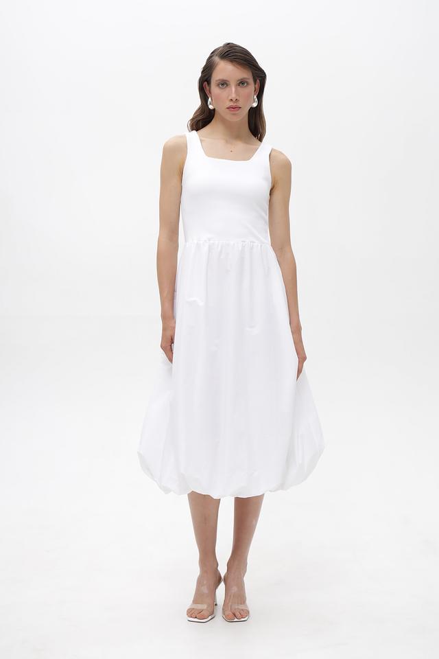 Белое платье Rich and Royal из хлопка с воздушной юбкой-баллон и квадратным вырезом. Модель выполнена из мягкой ткани с добавлением эластана для комфорта и свободы движений. Идеальный выбор для создания легкого и стильного образа. Состав: хлопок 95%, эластан 5%