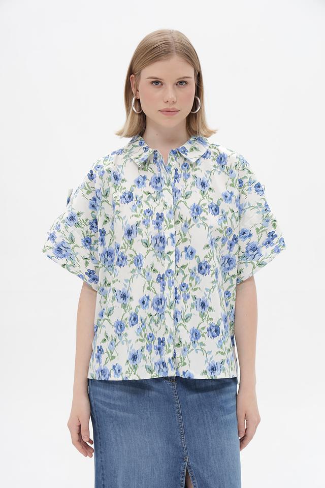 Белая блузка Rich and Royal с нежным цветочным принтом из 100% хлопка. Модель с короткими рукавами и классическим воротником станет отличным дополнением к вашему гардеробу. Состав: хлопок 100%