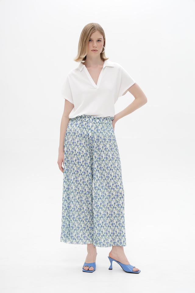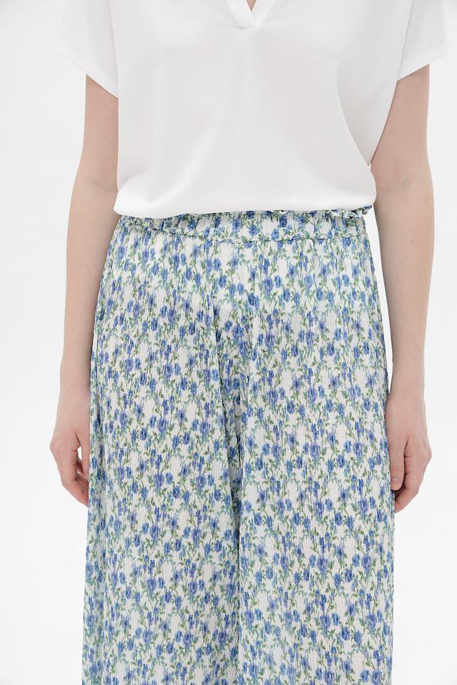 Женские брюки Rich and Royal голубого цвета с нежным цветочным принтом станут отличным дополнением к вашему гардеробу. Модель выполнена из лёгкой ткани и имеет удобный эластичный пояс. Состав: полиэстер 100%