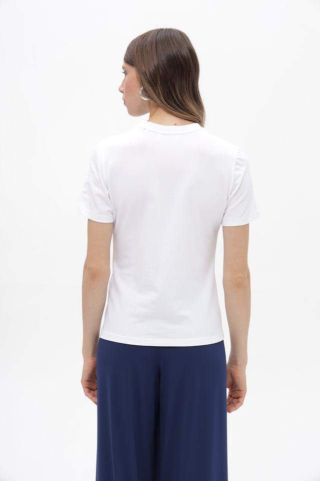 Белая футболка Rich and Royal с принтом в виде банта — стильная и комфортная модель из хлопка с добавлением эластана. Футболка имеет классический крой и короткие рукава, идеально подходит для создания повседневных образов. Состав: хлопок 93%, эластан 7%