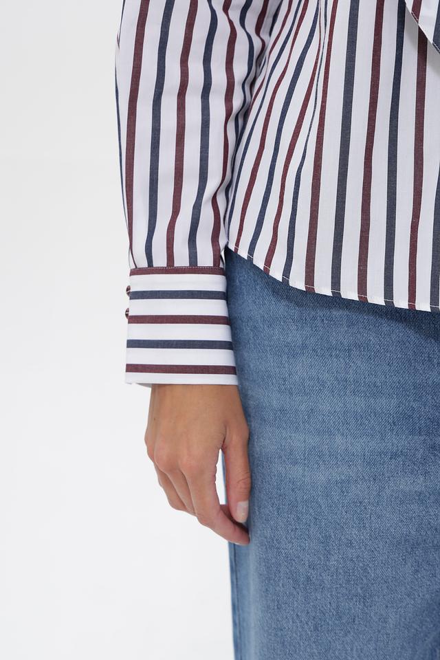 Представляем стильную блузку от бренда Rich and Royal. Модель выполнена в классическую полоску из сочетания белого, синего и бордового цветов.
