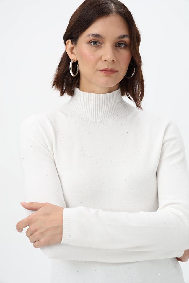 Представляем вашему вниманию элегантную водолазку от бренда Rich and Royal. Модель выполнена в белом цвете с добавлением деликатного люрекса, придающего ей особый шарм и блеск.
