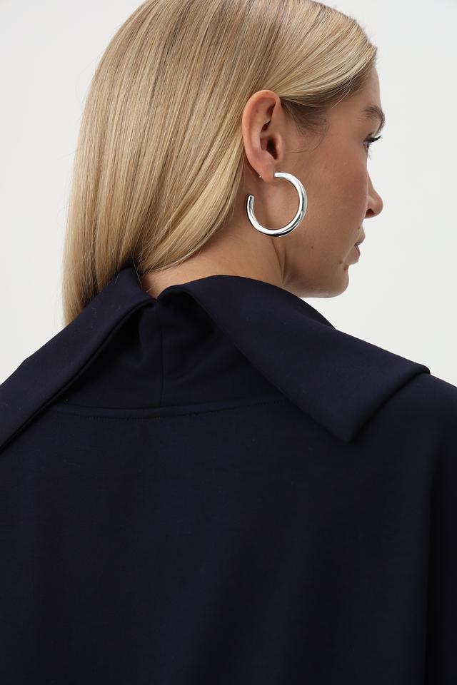 Тёмно-синий пуловер от Rich and Royal с элегантным воротником-хомутом. Модель выполнена из мягкой смеси вискозы, полиэстера и эластана, обеспечивающей комфорт и удобство в носке. Состав: вискоза 72%, полиэстер 23%, эластан 5%