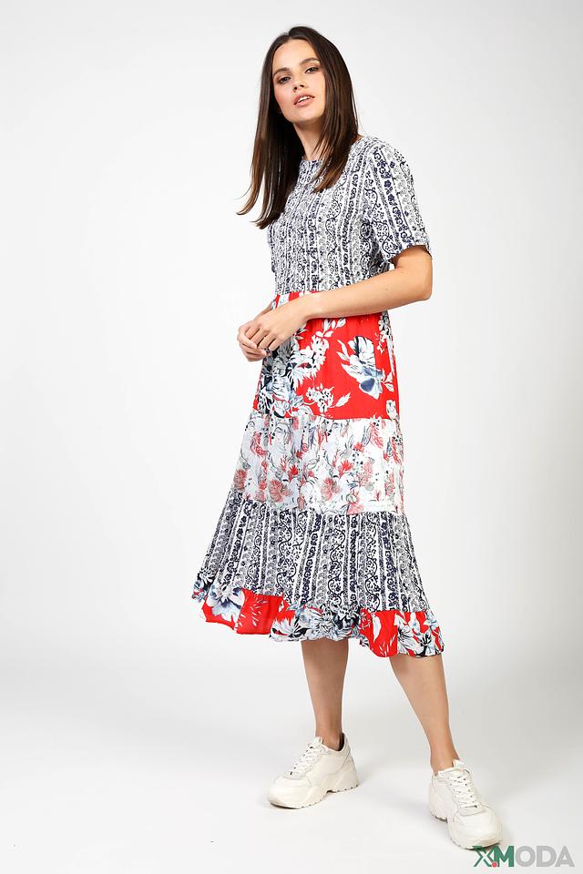 Платье Rich and Royal – это яркое и стильное решение для летнего гардероба. Модель выполнена в сочетании красного, белого и синего цветов с цветочным принтом и отличается многослойным дизайном юбки. Состав: вискоза 100%, Состав_подкладка вискоза 100%