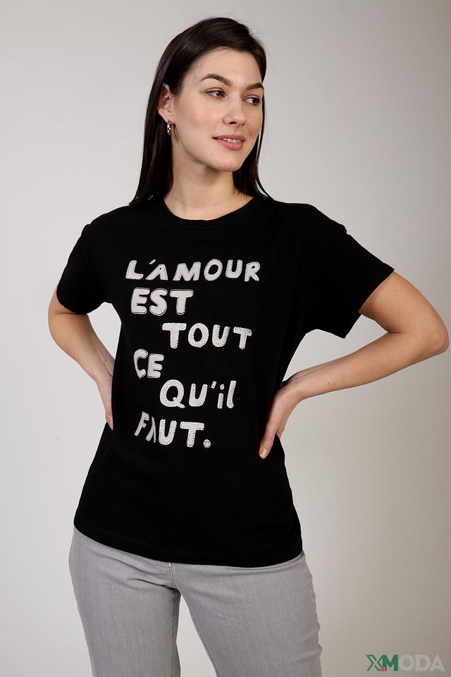 Чёрная футболка Rich and Royal с оригинальной надписью "L'amour est tout ce qu'il faut". Изготовлена из 100% хлопка, обеспечивая комфорт и удобство в носке. Стильный и лаконичный дизайн. Состав: хлопок 100%