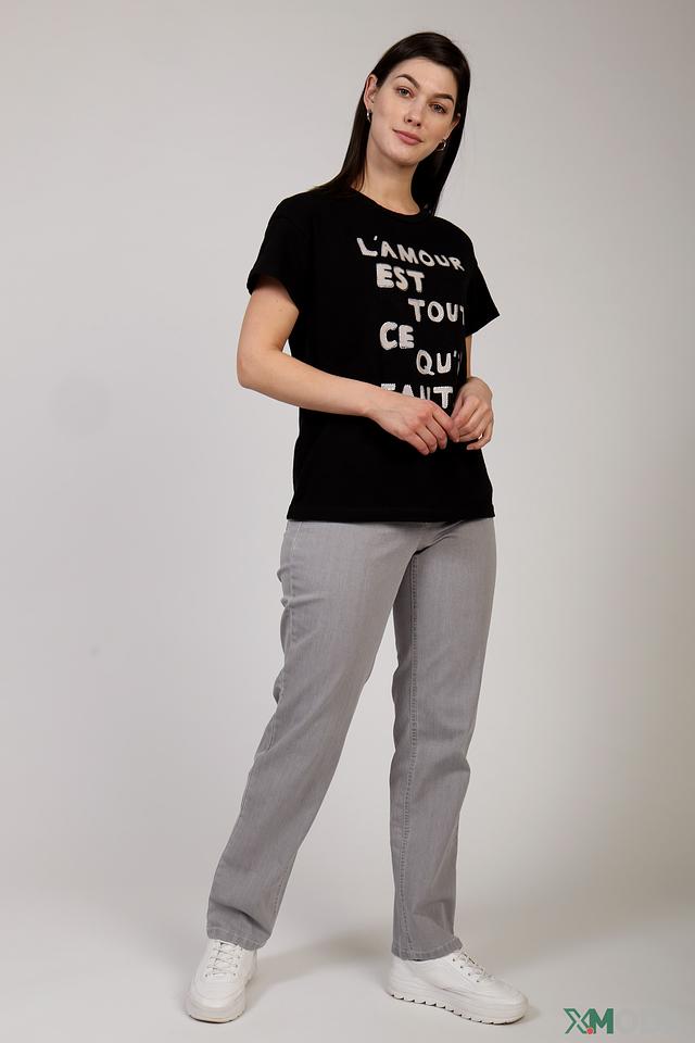 Футболка имеет прямой крой, который обеспечивает свободу движений и комфортную посадку по фигуре. Короткие рукава и круглый вырез горловины делают её универсальной и подходящей для любого типа телосложения.