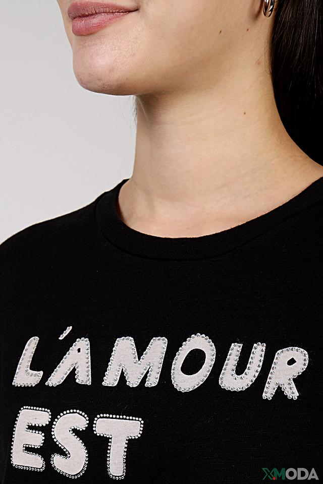 Эта футболка от Rich and Royal – отличный выбор для создания повседневного образа. Она выполнена в классическом чёрном цвете и украшена эффектной надписью "L'amour est tout ce qu'il faut", выполненной серебристыми стразами.