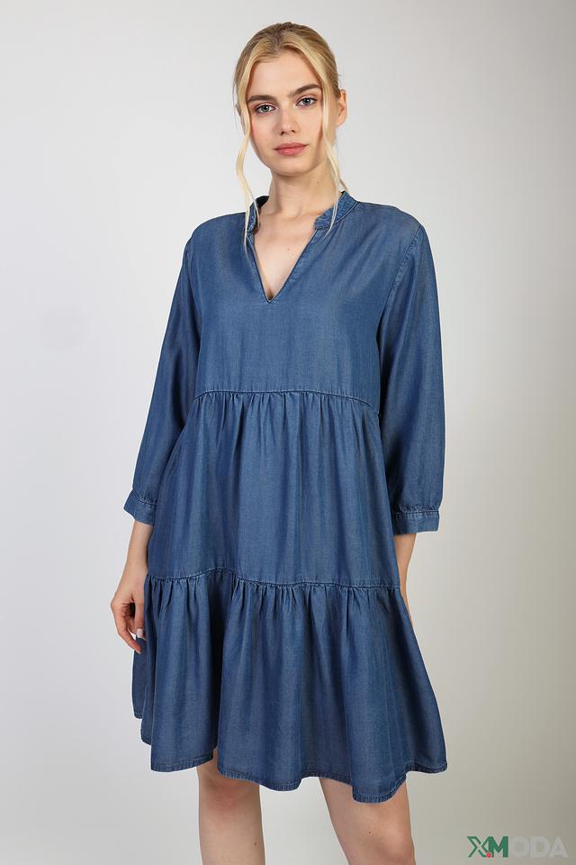 Джинсовое платье Rich and Royal синего цвета – это стильное и комфортное решение для повседневного образа. Платье выполнено из 100% лиоцела, имеет свободный крой, рукава 3/4 и многослойную юбку. Состав: лиоцел 100%