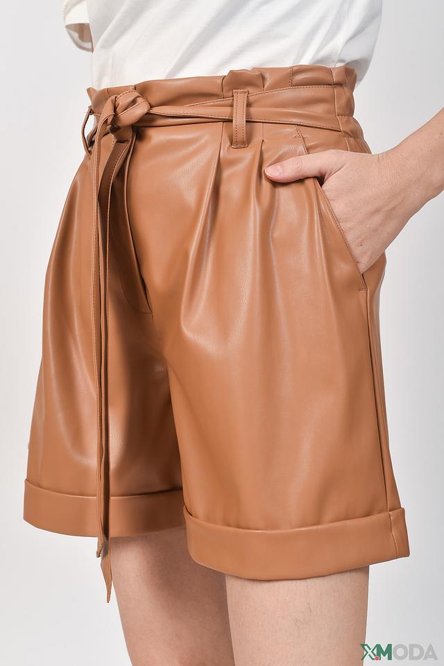 Эти шорты от Rich and Royal станут отличным дополнением к вашему гардеробу. Модель выполнена из высококачественной экокожи коричневого цвета, имитирующей натуральную кожу, что придает изделию роскошный вид.
