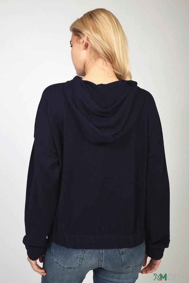 Женская толстовка Rich and Royal темно-синего цвета с капюшоном и шнурками. Изготовлена из мягкого хлопка с добавлением кашемира для комфорта и тепла. Стильный и удобный вариант для повседневной носки. Состав: хлопок 90%, кашемир 10%