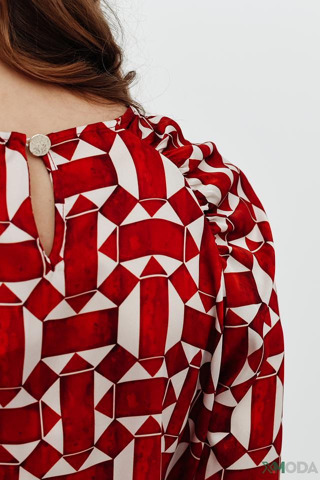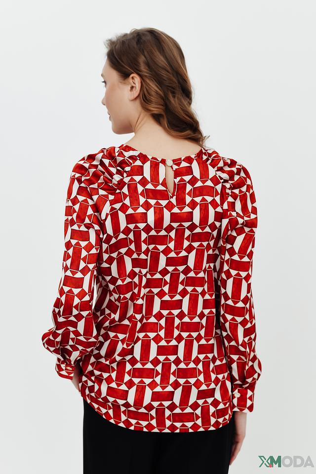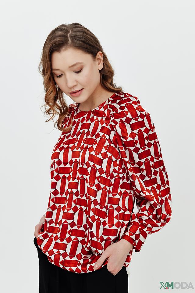 Женская блуза Rich and Royal красного цвета с геометрическим принтом. Модель выполнена из полиэстера и имеет рукава-фонарики, что придает ей романтичный вид. Идеально подойдет для создания стильного образа. Состав: полиэстер 100%