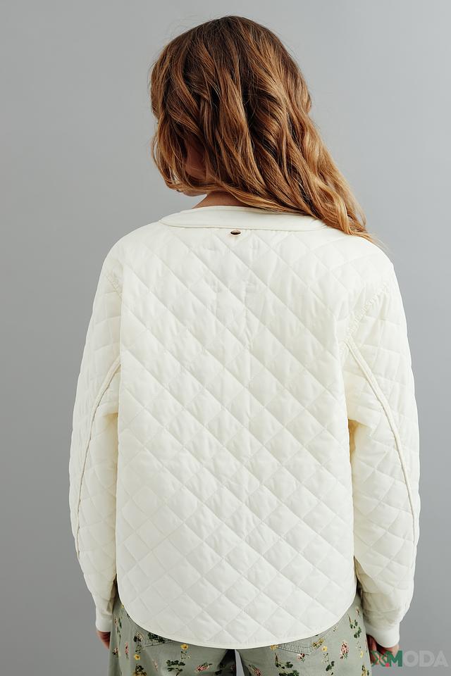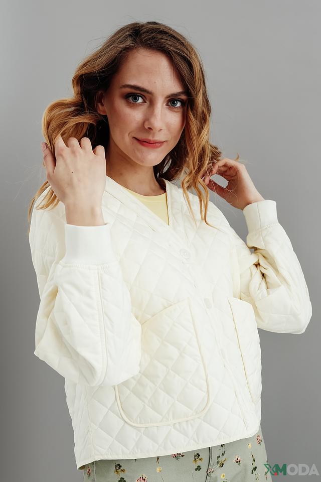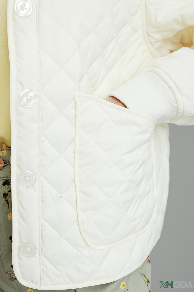 Куртка имеет укороченный крой и стеганую фактуру, что придает ей особый шарм. Застегивается на кнопки, что обеспечивает удобство и быстроту одевания. Воротник-стойка добавляет элегантности.