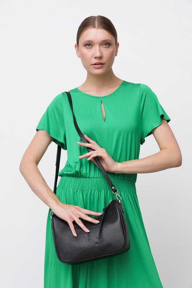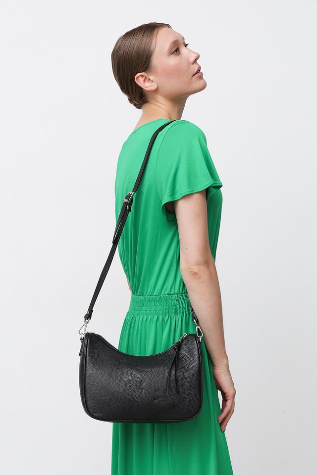 Сумка имеет классическую форму и лаконичный дизайн, что делает её универсальной и подходящей для различных стилей одежды. Чёрный цвет придает ей элегантность и сдержанность.