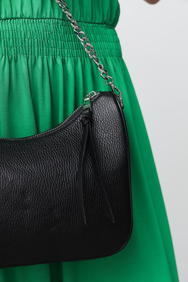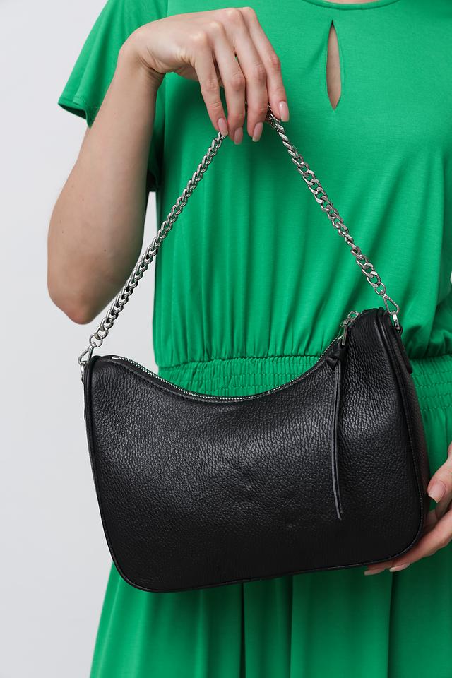 Удобная цепочка позволяет носить сумку на плече или через плечо, освобождая руки. Внутреннее пространство сумки достаточно вместительное, чтобы вместить все необходимые вещи. Застежка-молния обеспечивает безопасность содержимого.