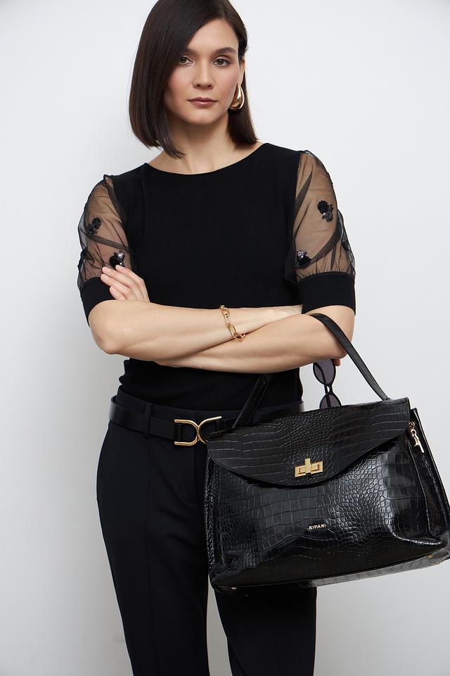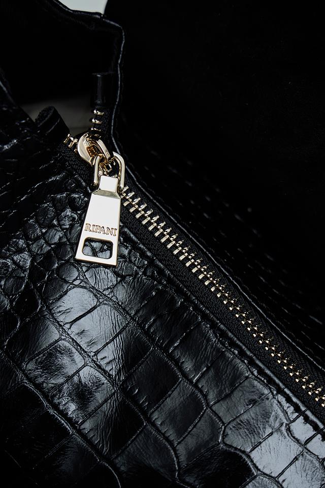 Чёрная сумка Ripani из натуральной кожи с текстурой под крокодила – элегантный и практичный аксессуар. Модель выполнена в лаконичном дизайне с удобными ручками и надёжной фурнитурой. Состав: кожа 100%