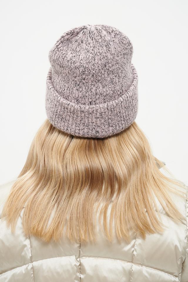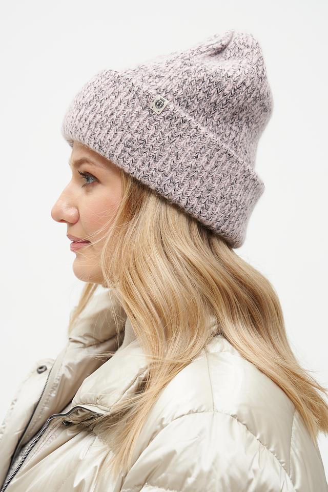 Шапка имеет классический дизайн и лавандовый цвет с вкраплениями более темных нитей, что придает ей интересный текстурный эффект. Вязаная структура обеспечивает хорошую теплоизоляцию, а удобная форма плотно прилегает к голове, защищая от холода.