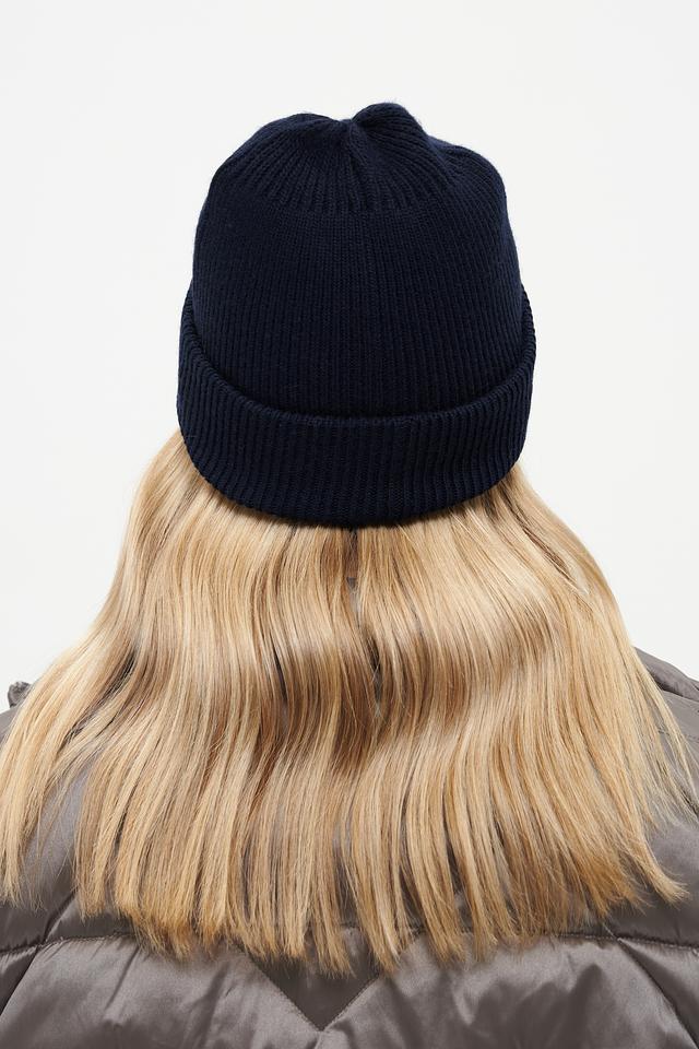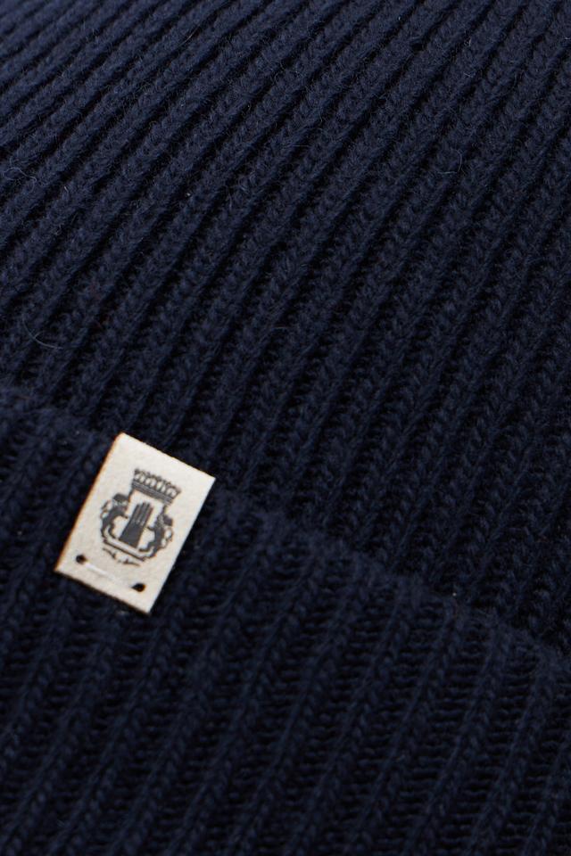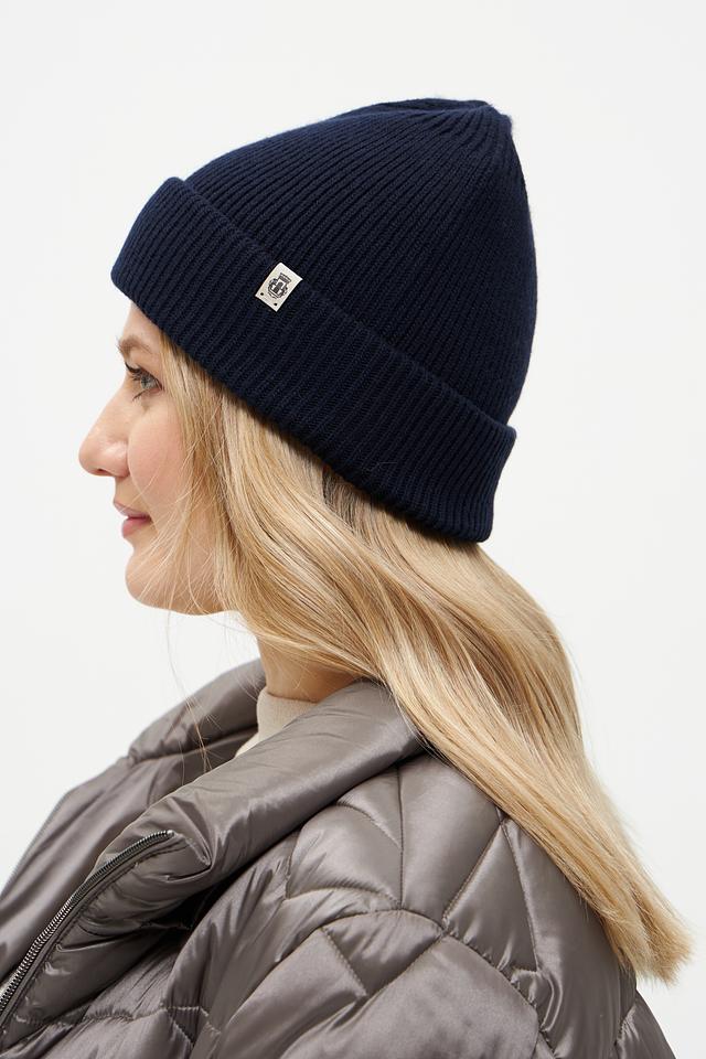 Шапка имеет классический дизайн и тёмно-синий цвет, который легко сочетается с любой одеждой. Плоткая вязка обеспечивает надежную защиту от ветра и мороза, а удобная посадка не стесняет движений.